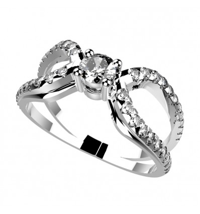 Bague à l’entrecroisement fluide de courbes de diamants, percées d’un solitaire éblouissant.
